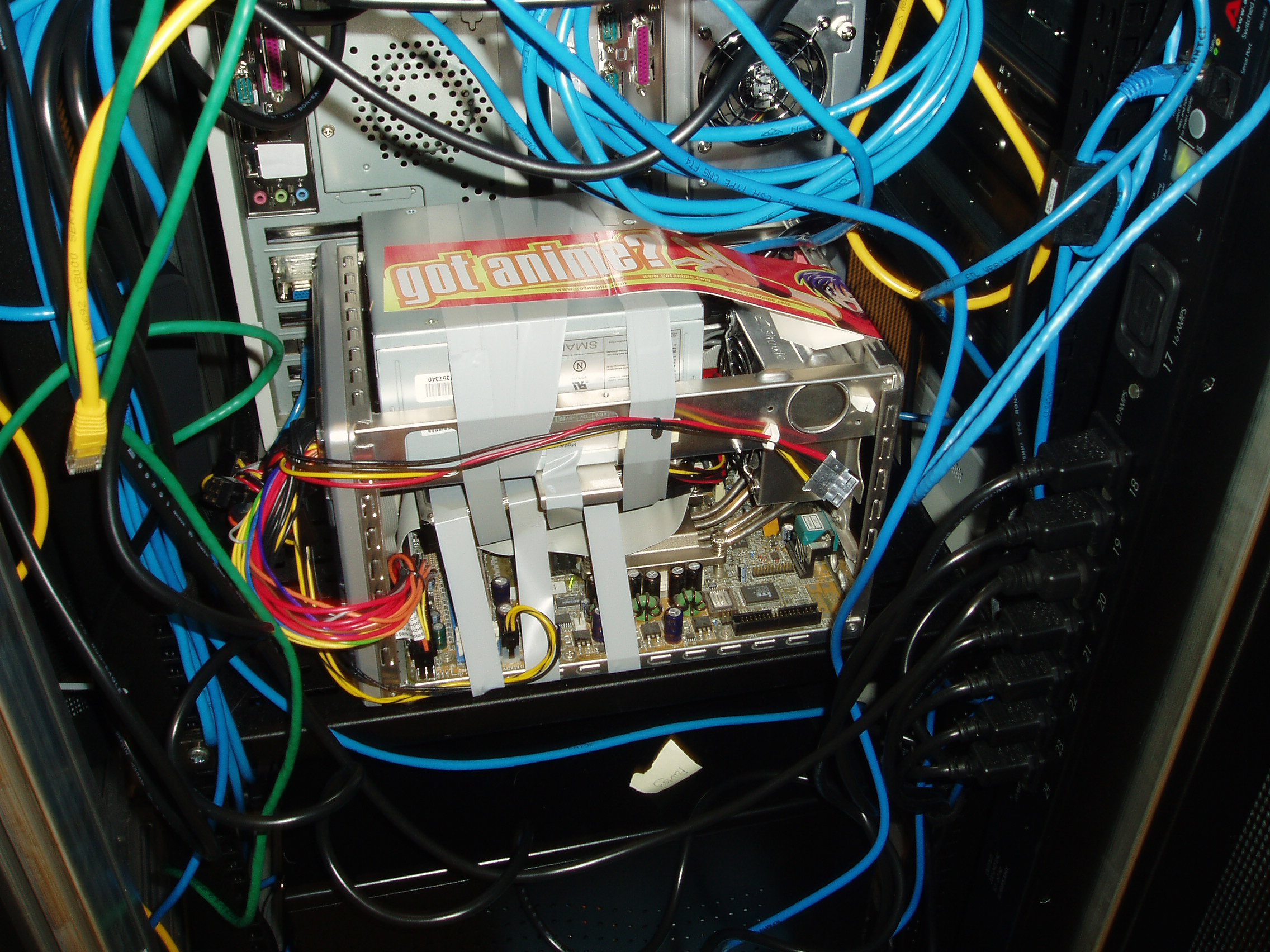I did a solid amount of filesharing Linux-ISO-downloading on this machine in its time. I did eventually replace it with a legit 1U rackmount server that I bought from one of our customers for 500 bucks, but it wasn't nearly as cursed as this thing.